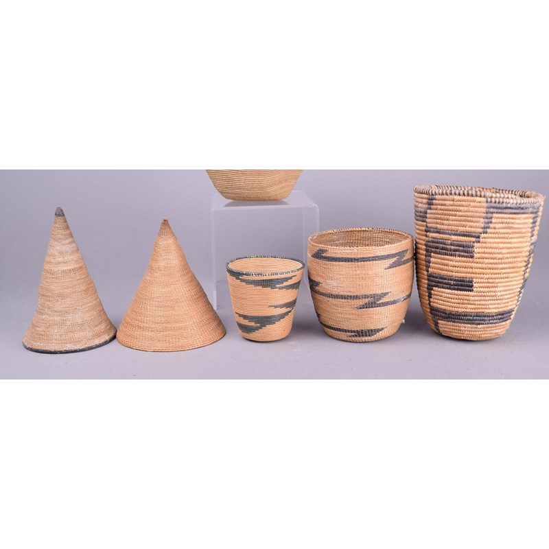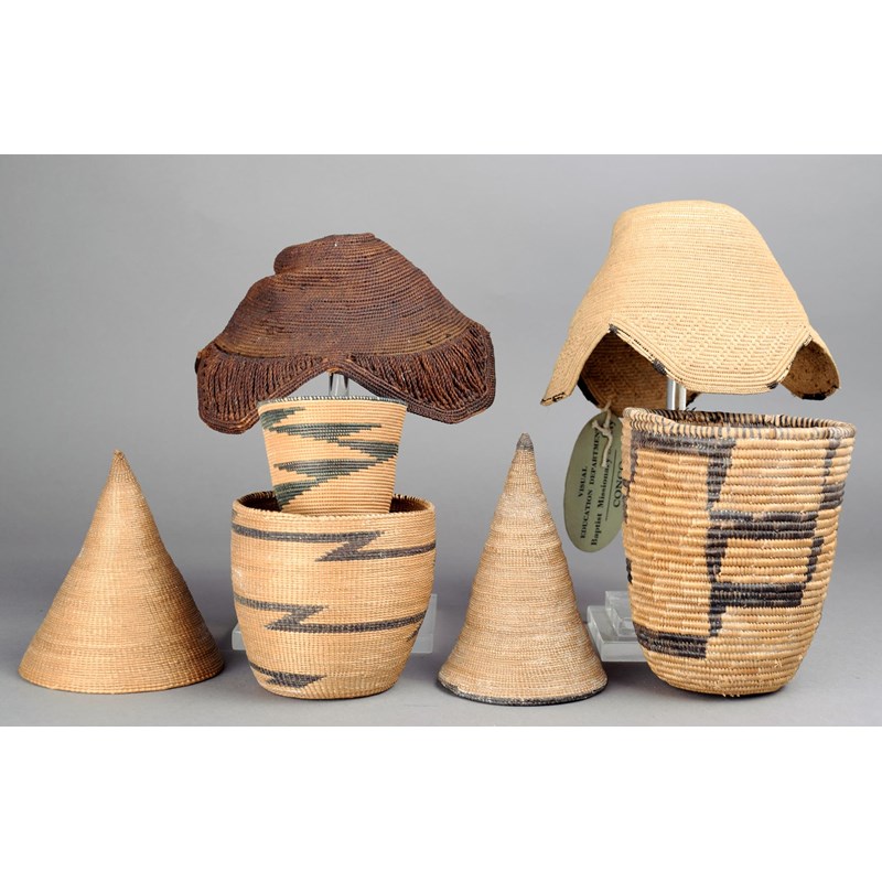 and three Tutsi baskets, one with a cover and the smaller with an associated cover. (7)
