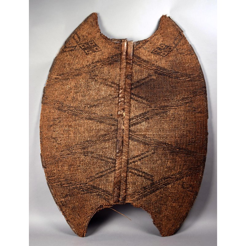 A Mambila kor shield Cameroon woven palm fibre and two wooden slats
