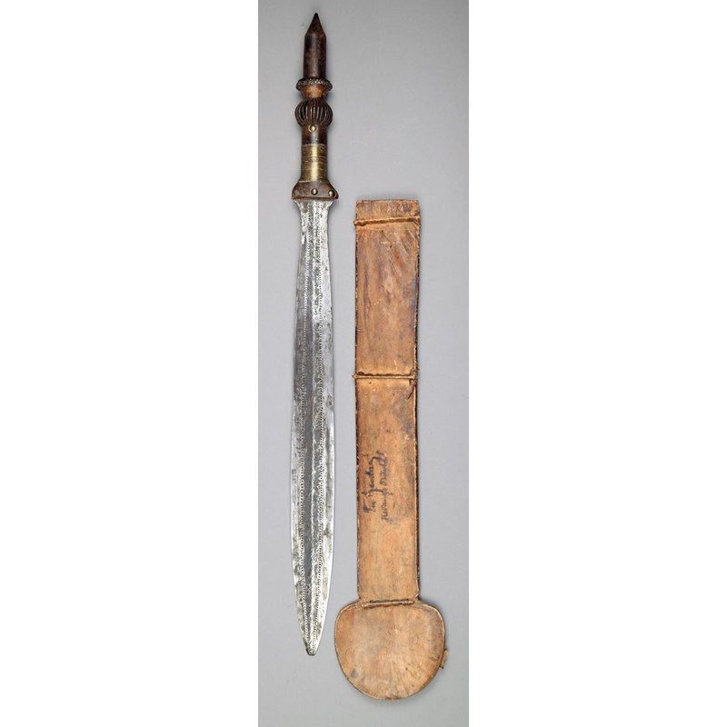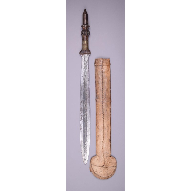 A Yaka sword with scabbard Mbeeli ya phoko Democratic Republic of Congo with a dot and line...