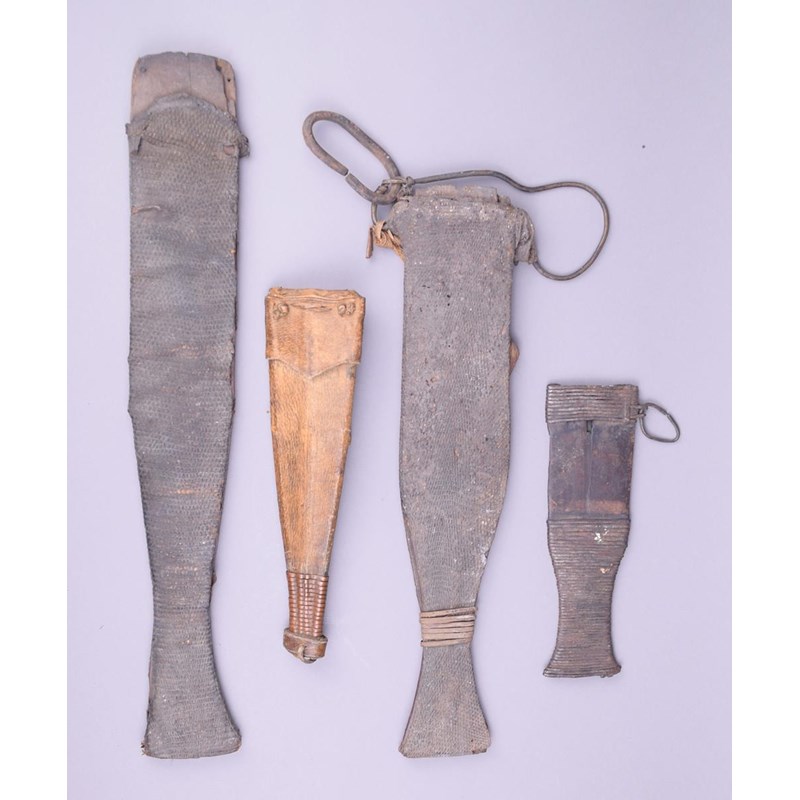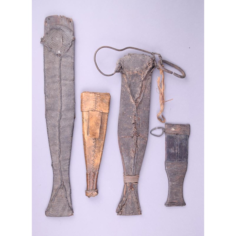 Four Fang knife scabbards Gabon two covered with reptile skin