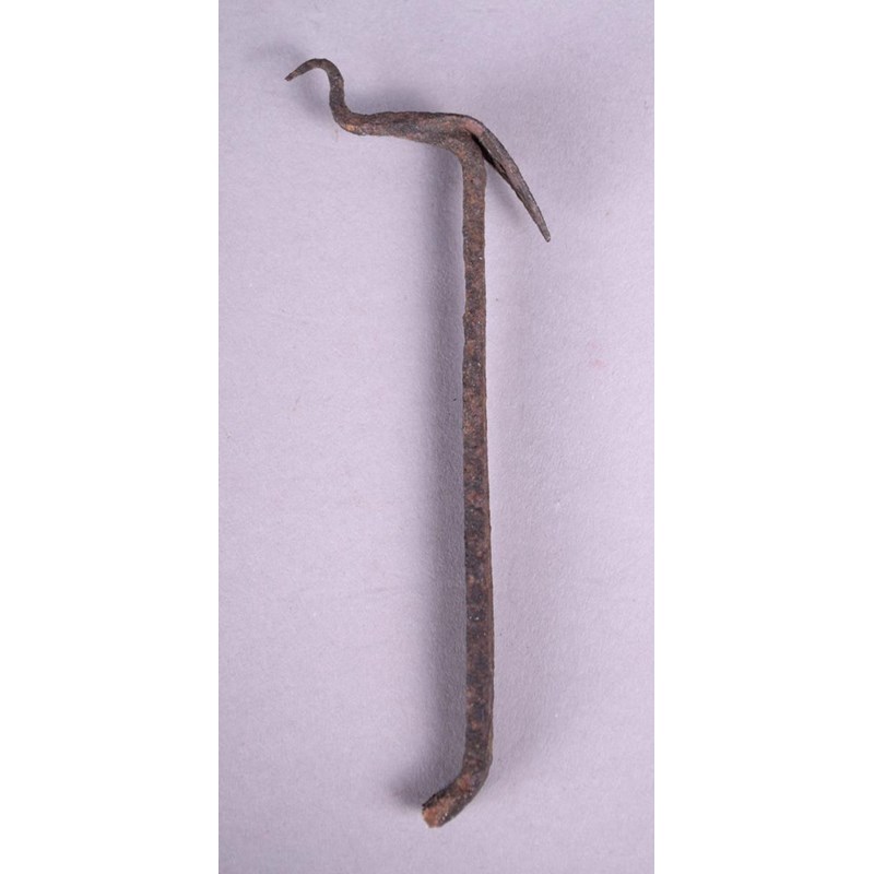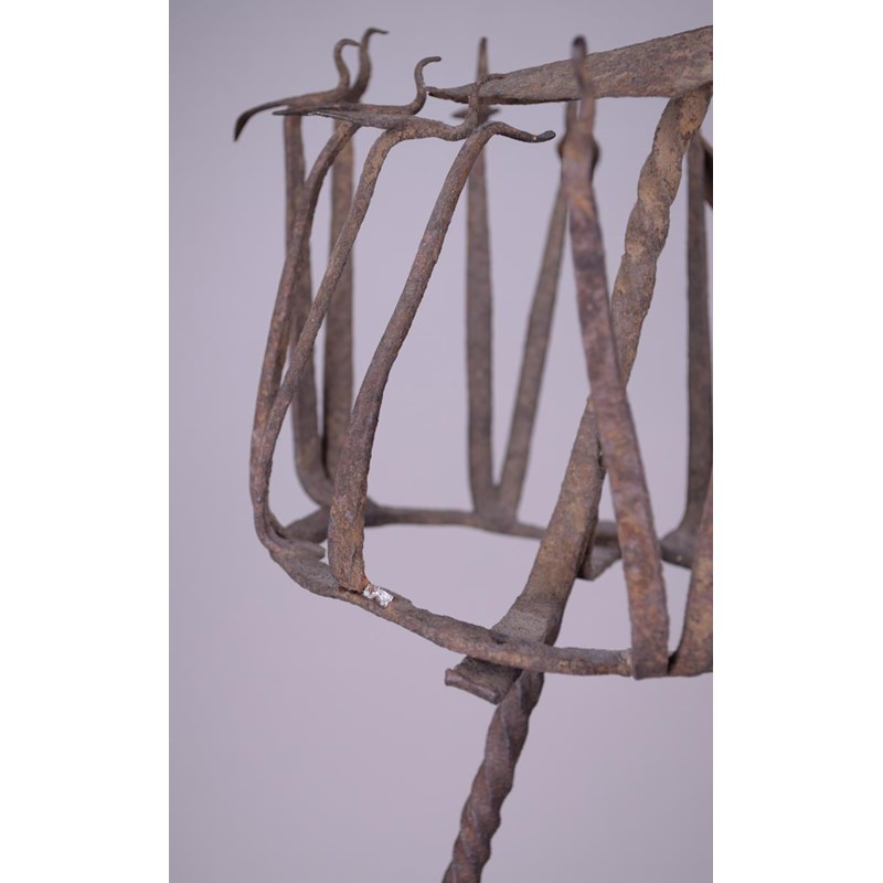 iron with crowns of birds, one with a chameleon/bird finial and with incised decoration to the flattened shaft,