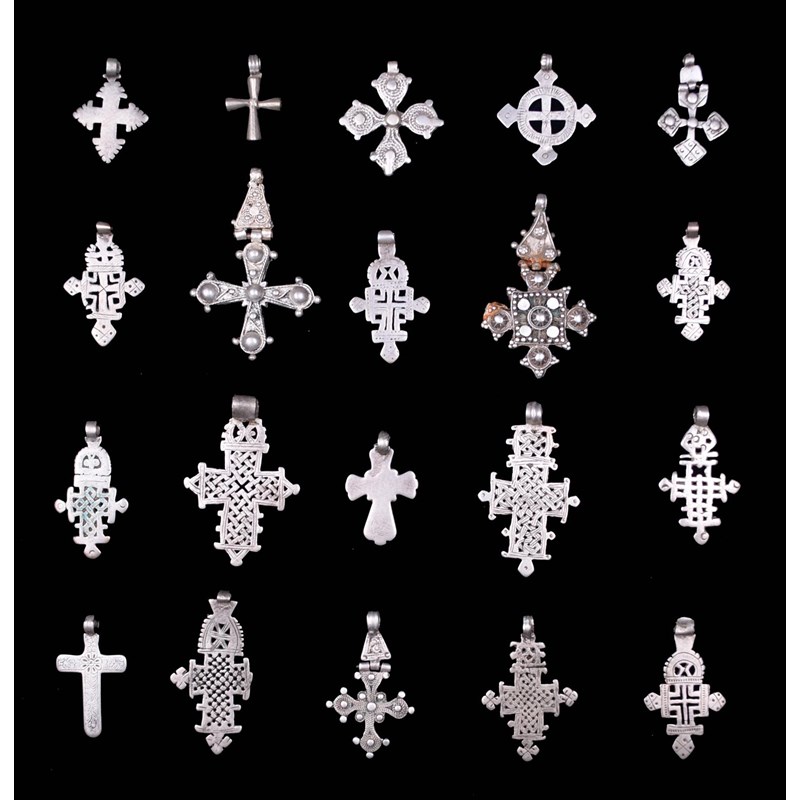 Twenty Ethiopian Coptic cross pendants silver coloured metal