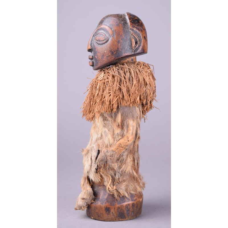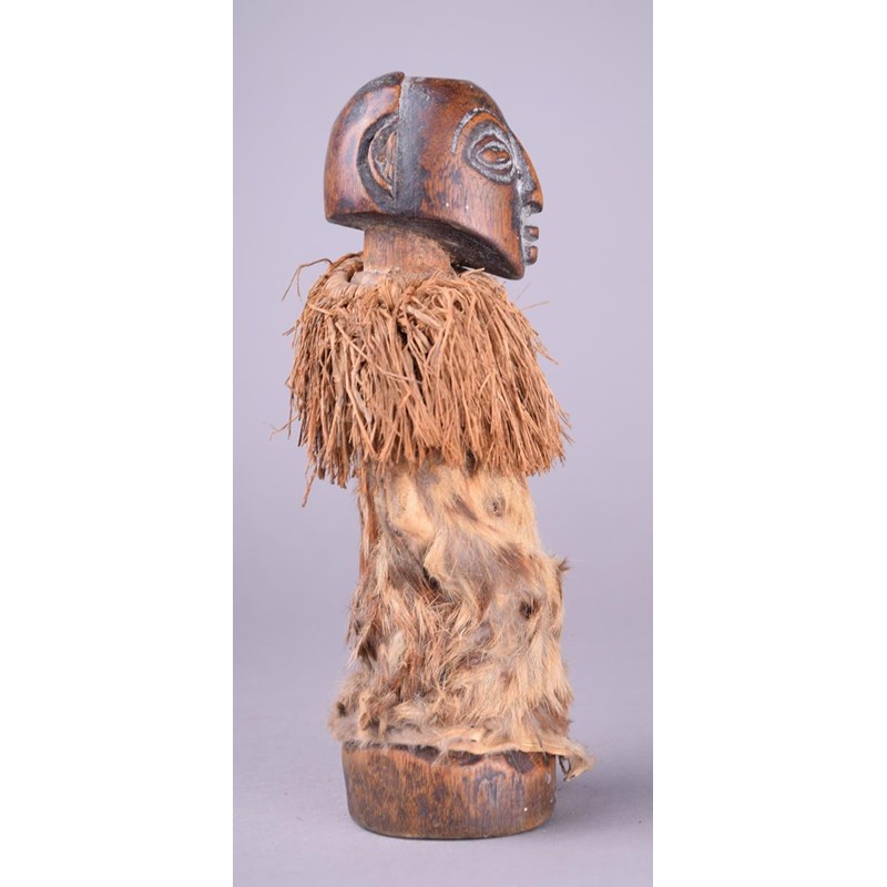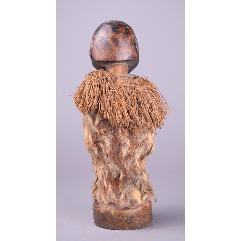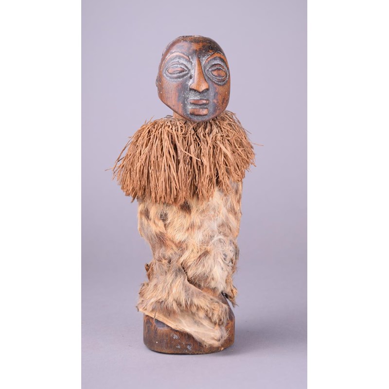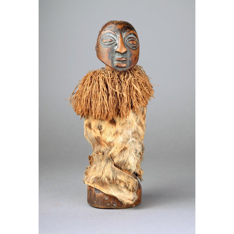wood, fibre and fur, with a charge recess to the top of the head and with hands on the abdomen,