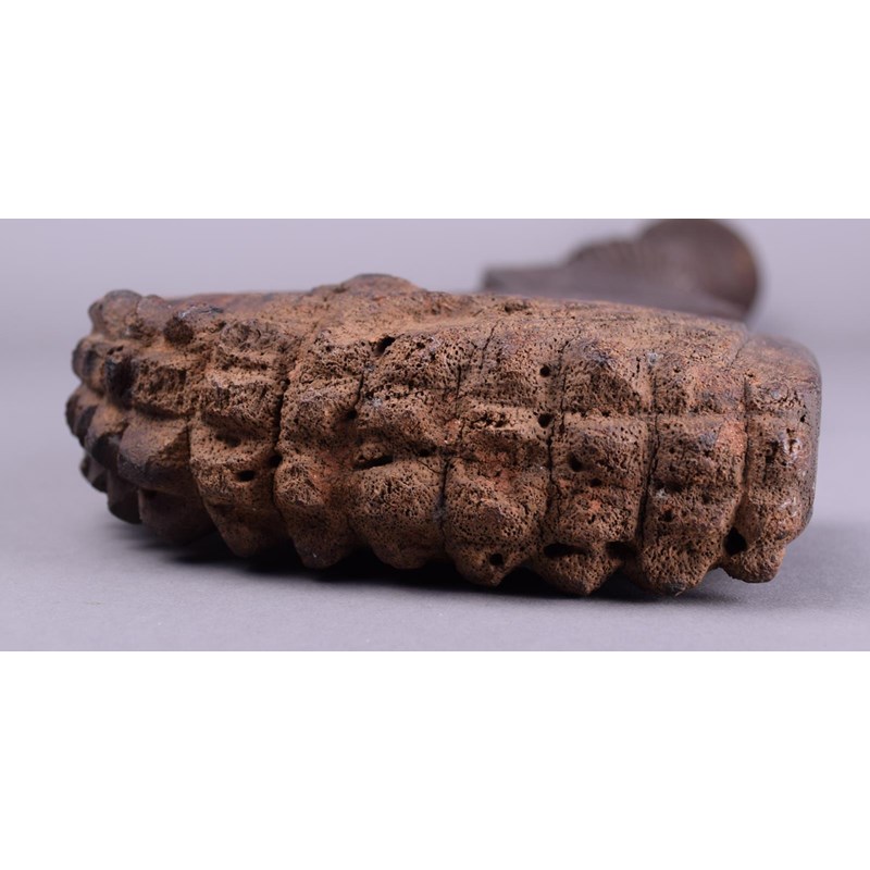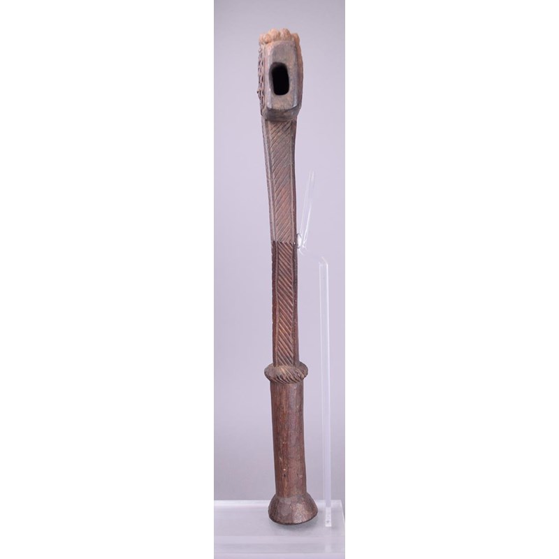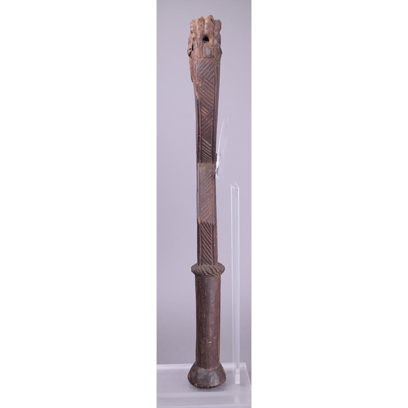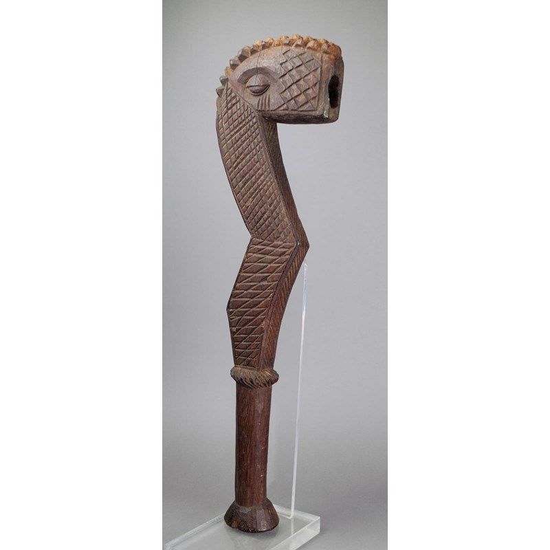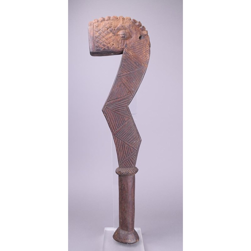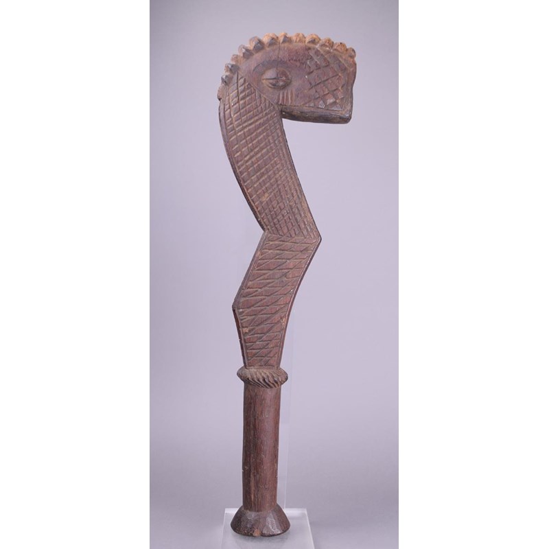 A Fon zoomorphic axe shaft Benin wood with carved decoration including a nodule top and an eye...