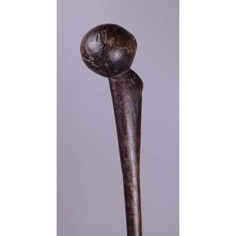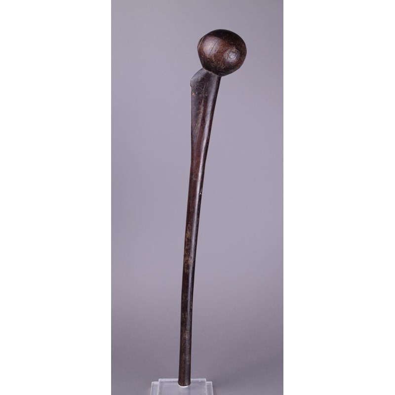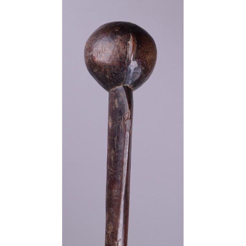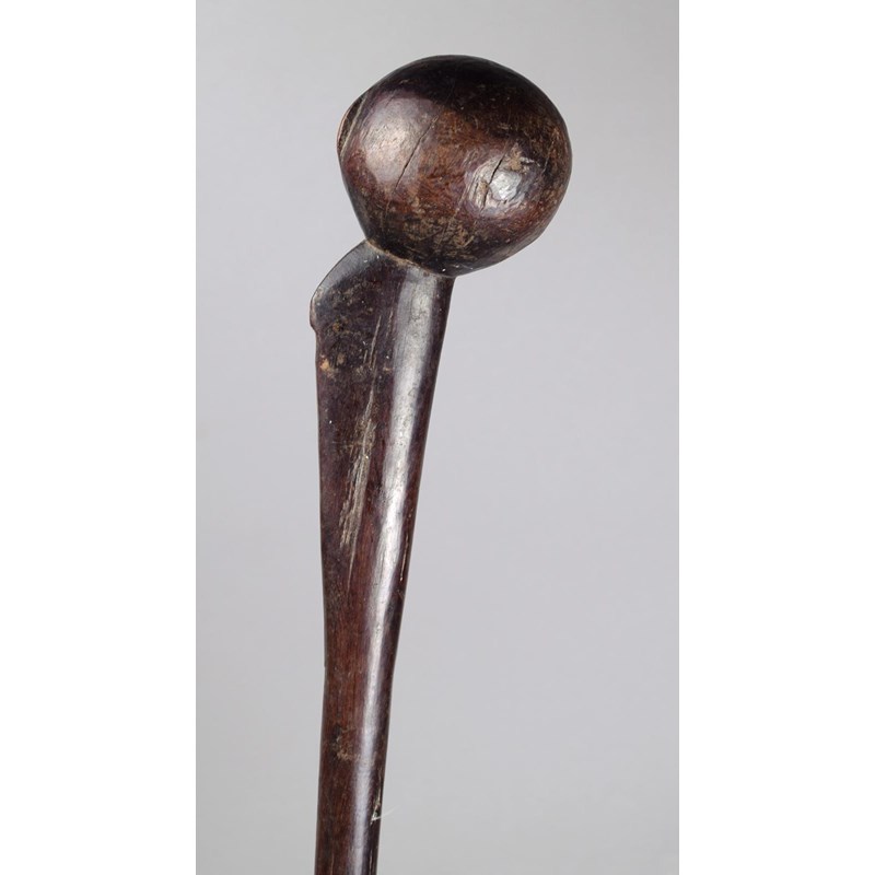 A Gogo knobkerrie Tanzania wood with a spherical head having a short crest to the back on a...