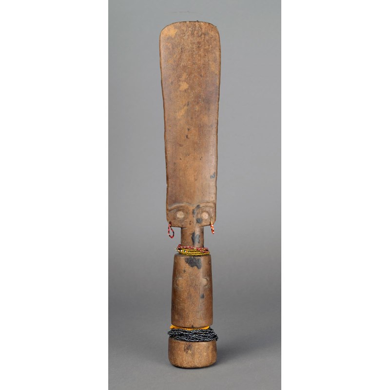 A Fante doll Ghana wood with beads and with remains of fibre to the top