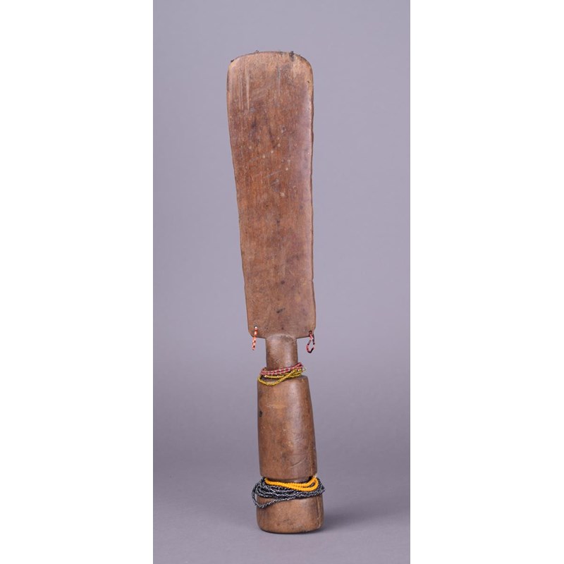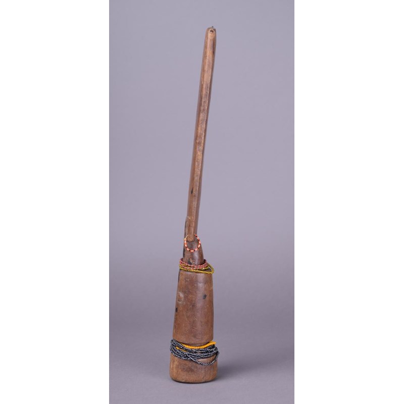wood with beads and with remains of fibre to the top,