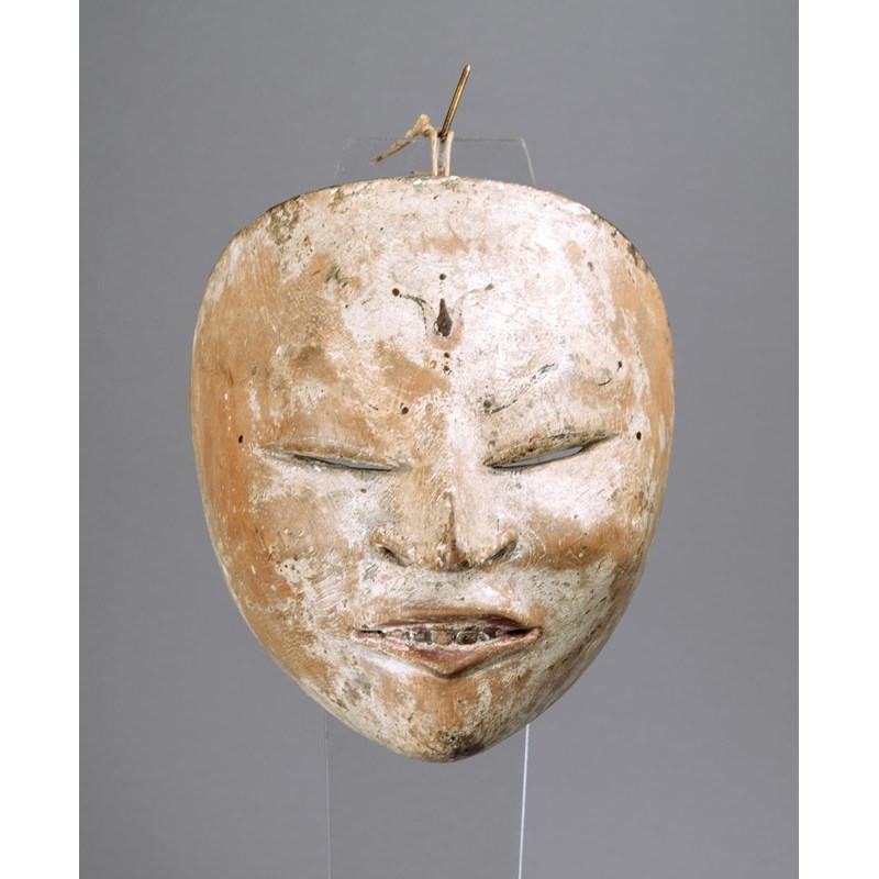 A Java mask Indonesia wood with remains of white pigment and painted decoration