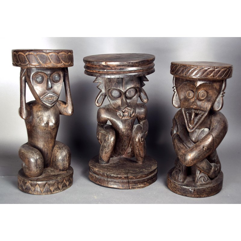 Three Dayak stools Indonesia wood