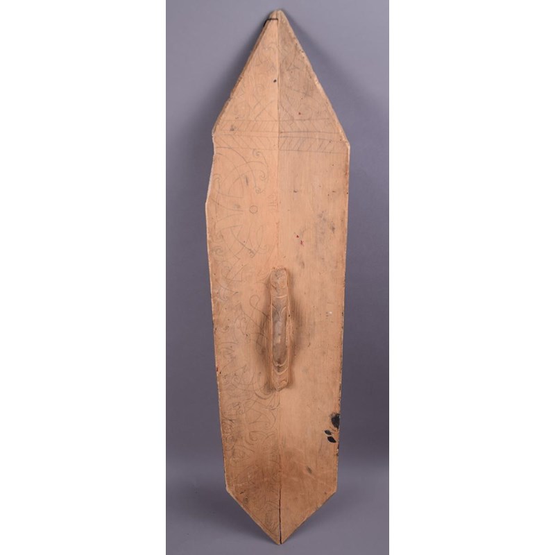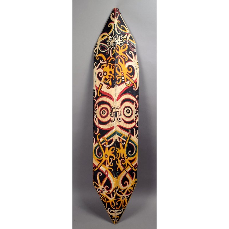 A Dayak shield Indonesia wood with painted decoration and with an integral handle