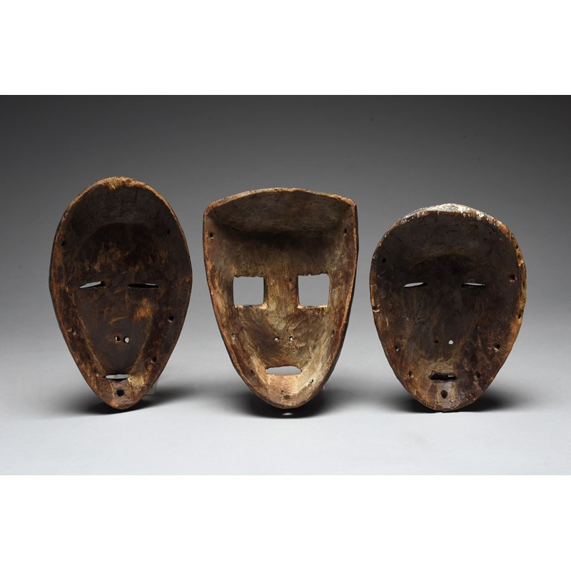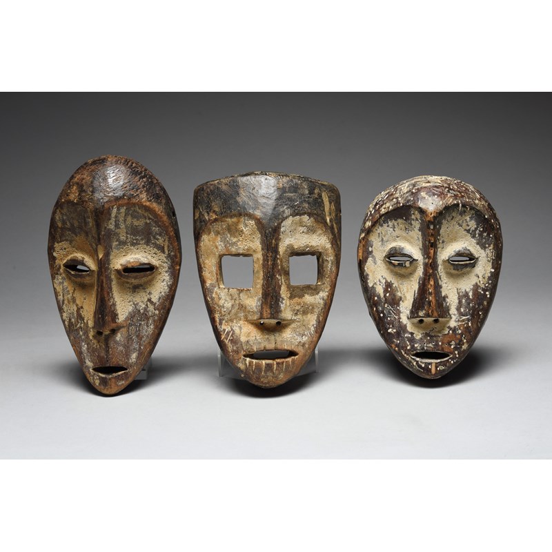 one with square eyes and the others elliptical, all with open mouths and remains of a white pigment,