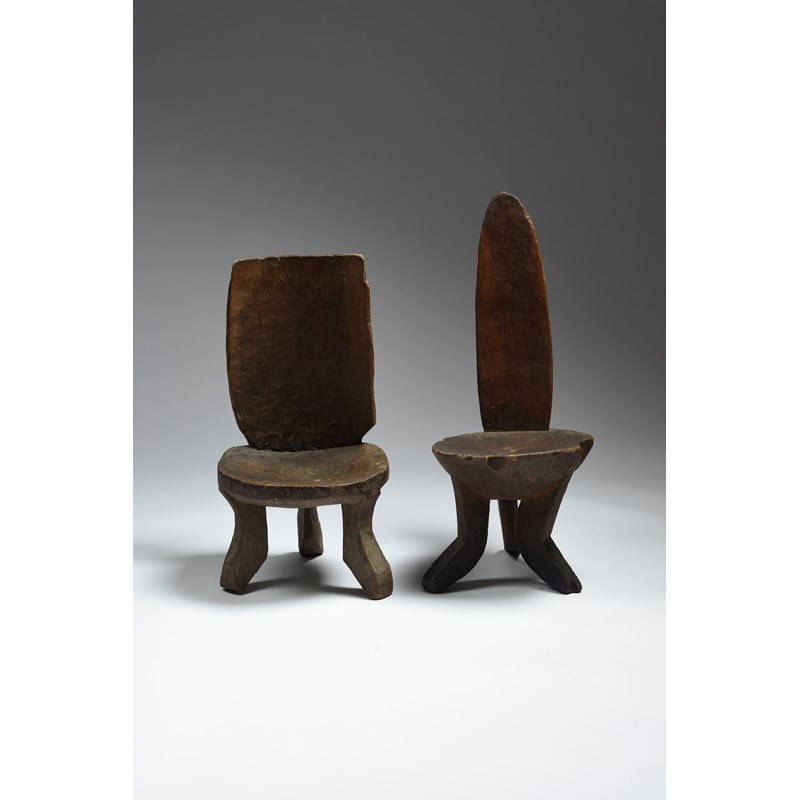 with panel backs, one leaf shaped and inscribed with six lines of Ethiopian script,