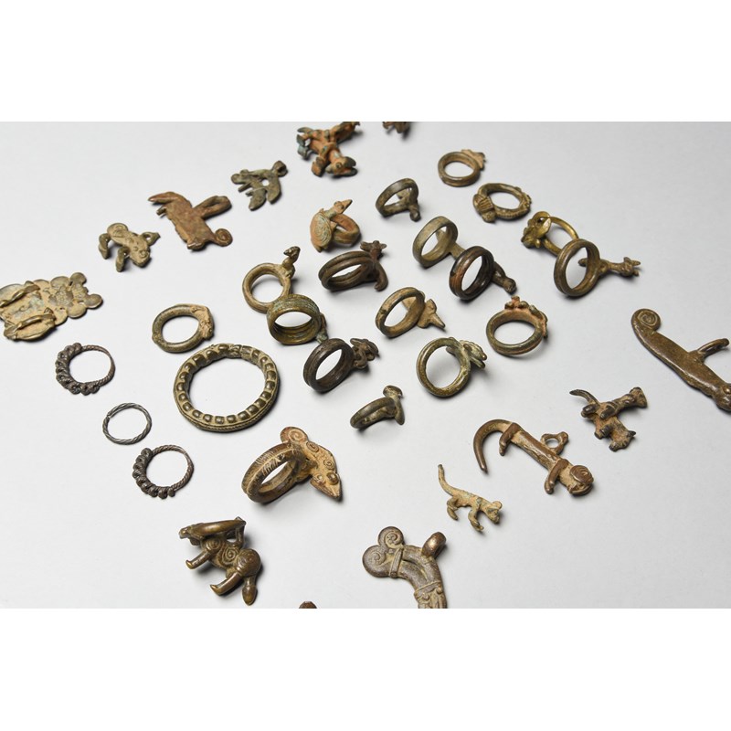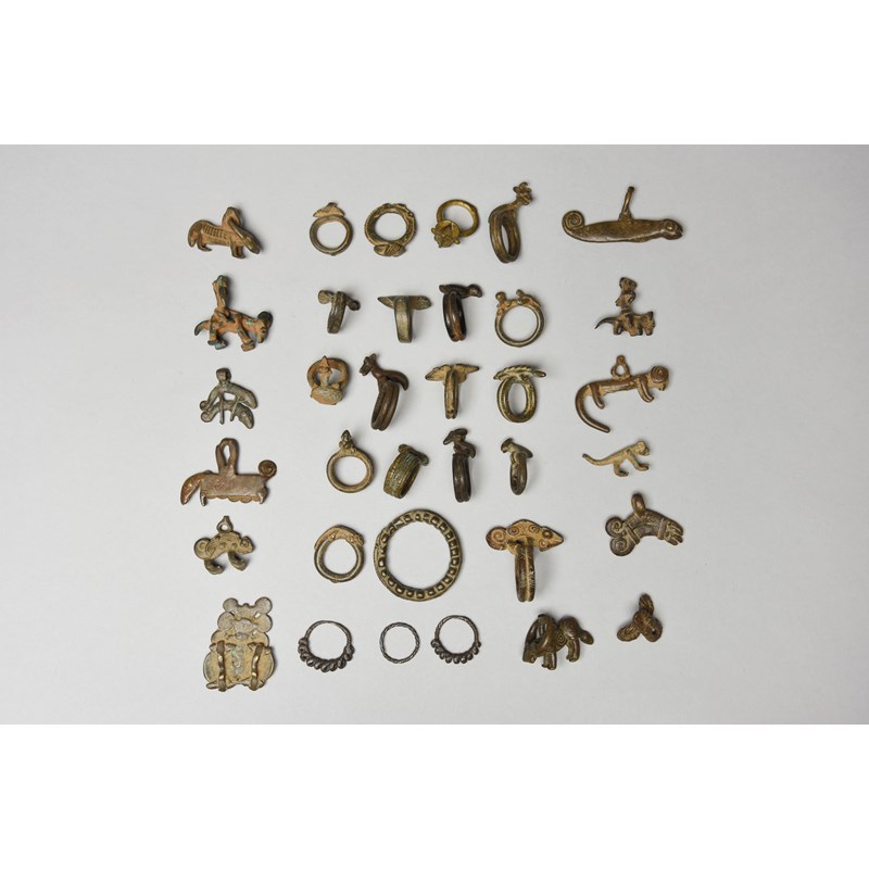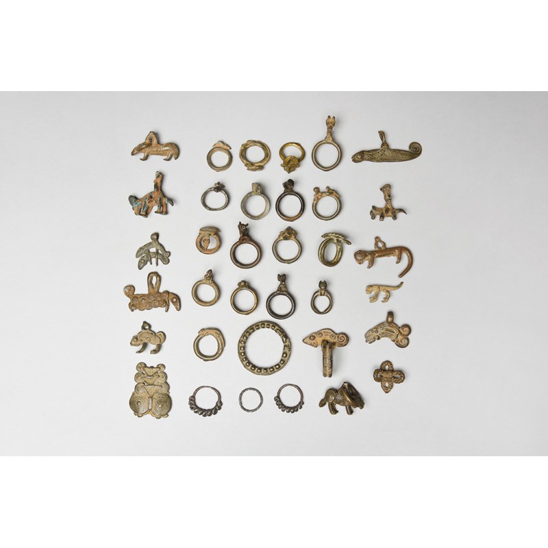bronze and iron, most cast with either animals, fish, birds and an anklet,