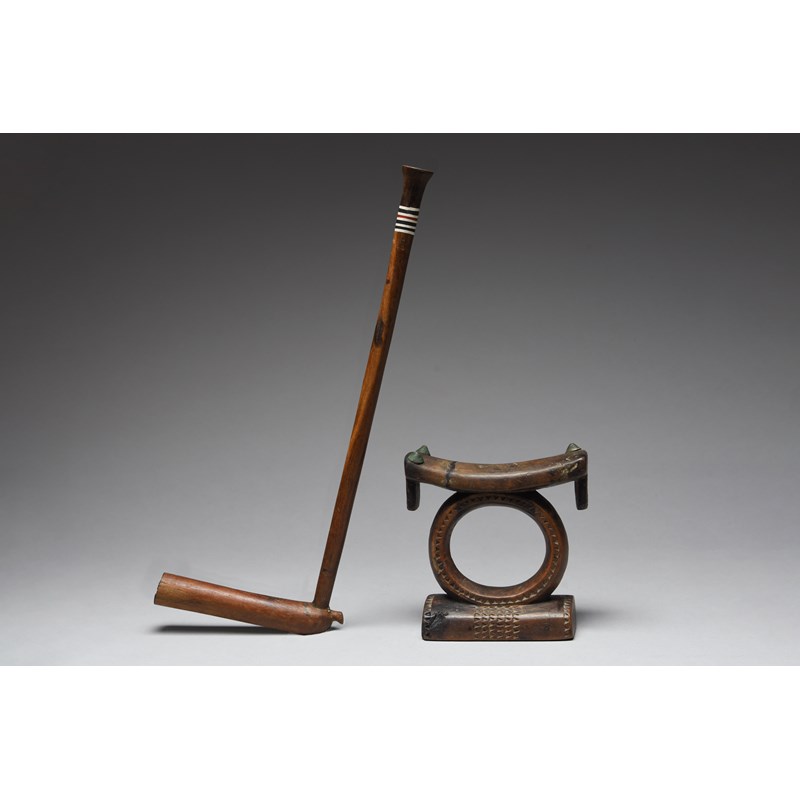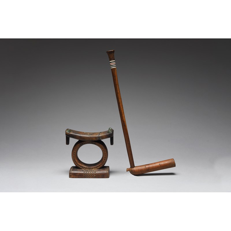 and a Zulu pipe, with a plastic discs and a metal liner, 37.5cm long. (2)
