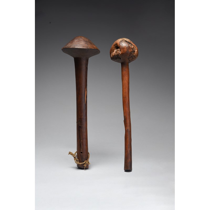 and a Kanak club, New Caledonia, with stippled markings to the top of the shaft and underside of the head, 40cm long. (2)