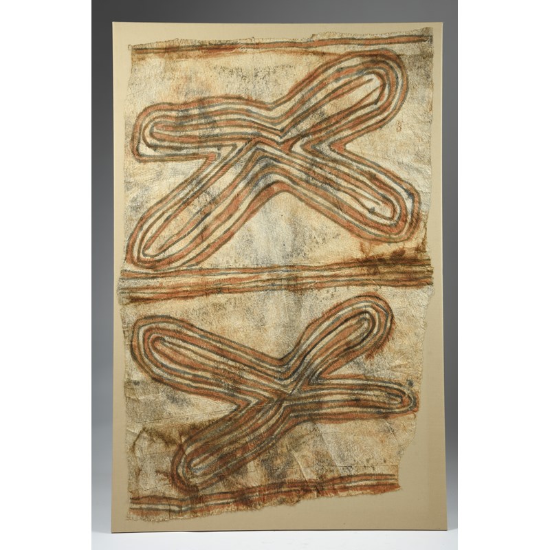 bark cloth with pigment decoration, the back with a handwritten paper label Dr ALLEN,