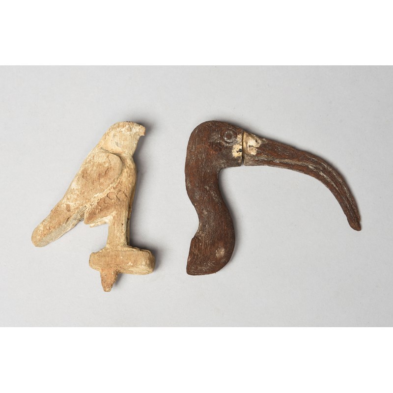 and an Egyptian wood Ibis head, Late Period, 8.1cm high. (2)