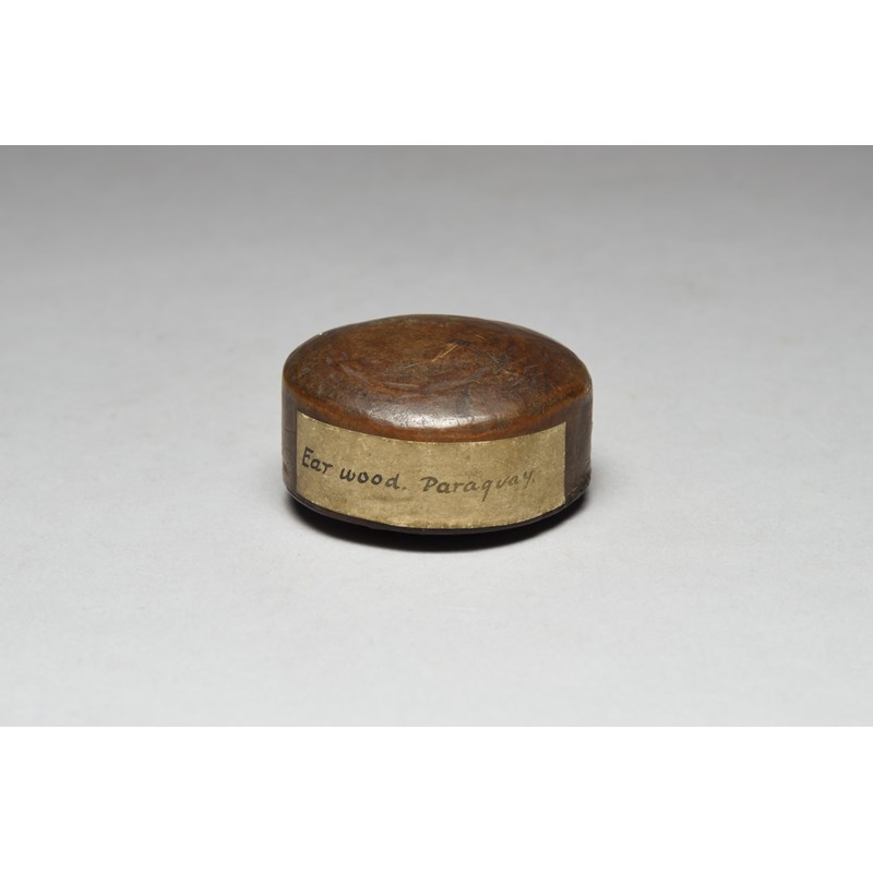 of disc form, with a hand written label Ear wood. Paraguay.,
