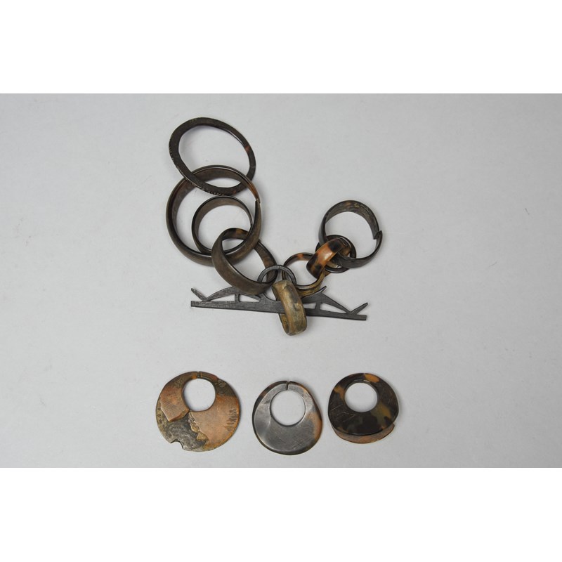 and three Solomon Islands turtleshell nose ornaments, 4.5cm, 4.2cm and 4cm high. (4)