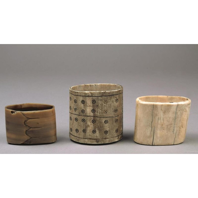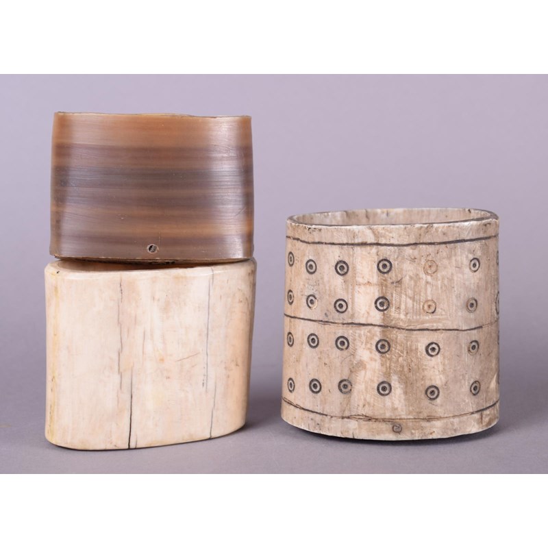 λThree Inuit snuff containers Alaska walrus ivory and horn