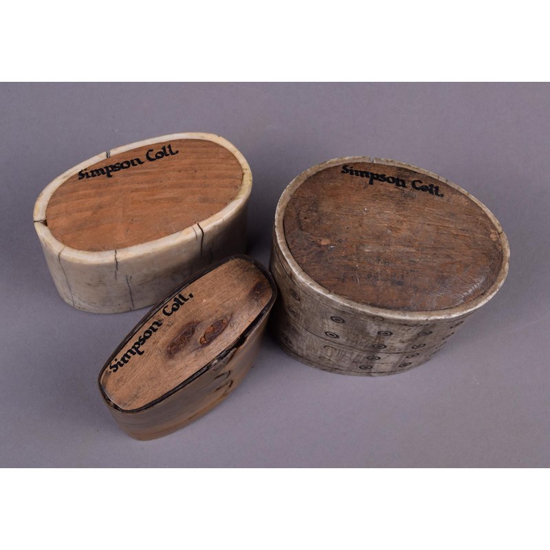 walrus ivory and horn, with wood bases, inscribed Simpson Coll., the larger with linear and circle decoration,