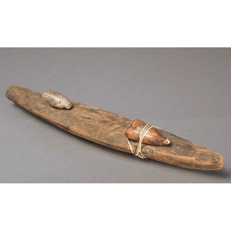 wood with two walrus ivory seals on the deck, one bound with gut, 19th century,