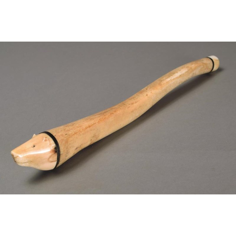 walrus baculum, penis bone, baleen and walrus ivory, with a carved polar bear head finial, 19th century,