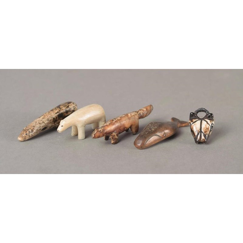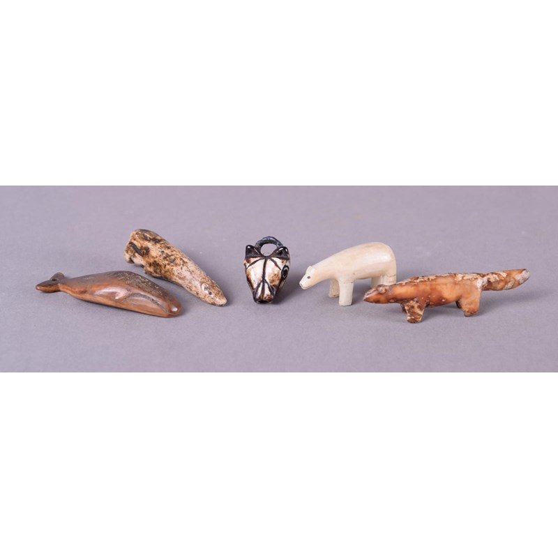 and two Inuit polar bear amulets, and Inuit fox amulet and an Inuit polar bear head amulet. (5)