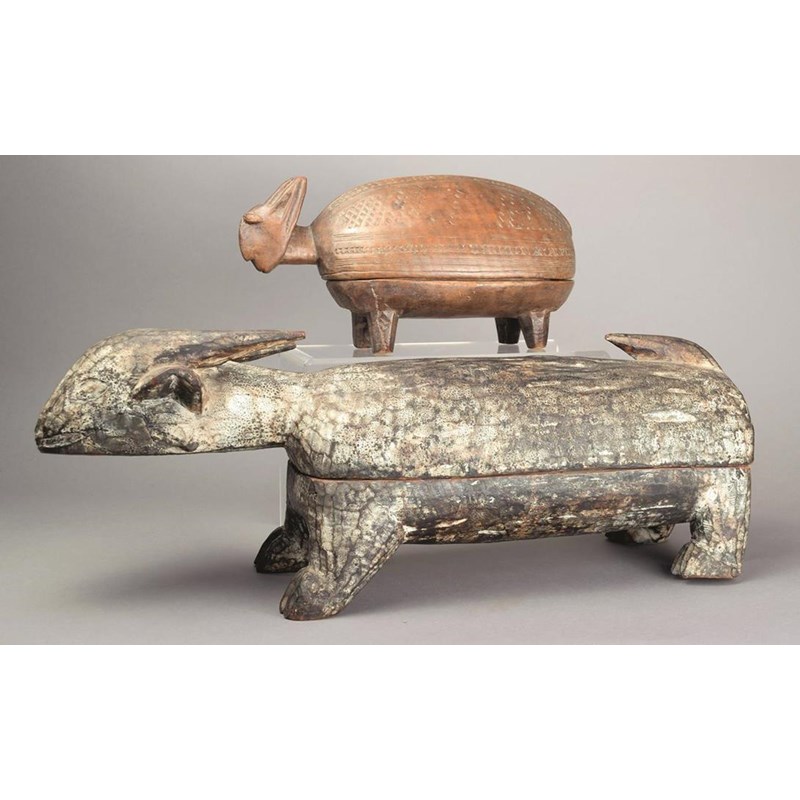 Two Yoruba zoomorphic kola nut boxes