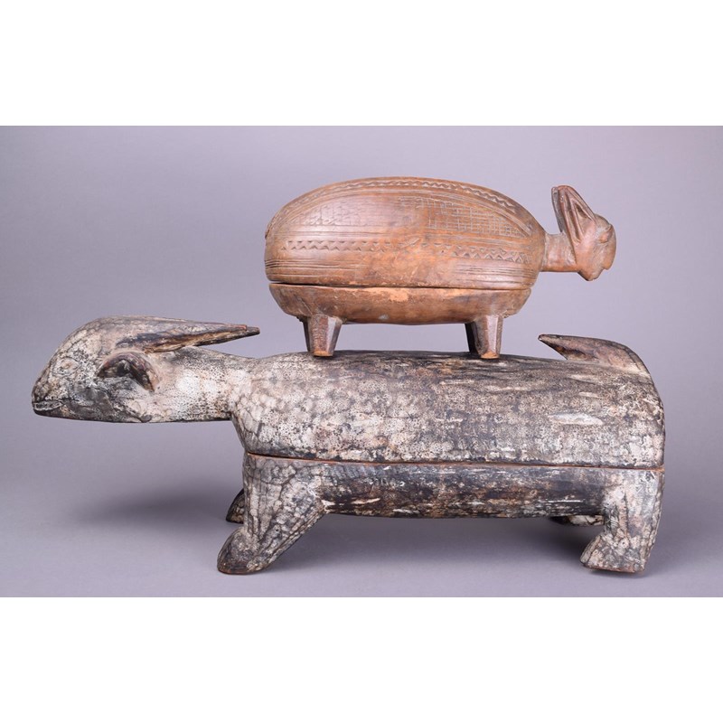 Two Yoruba zoomorphic kola nut boxes Nigeria wood