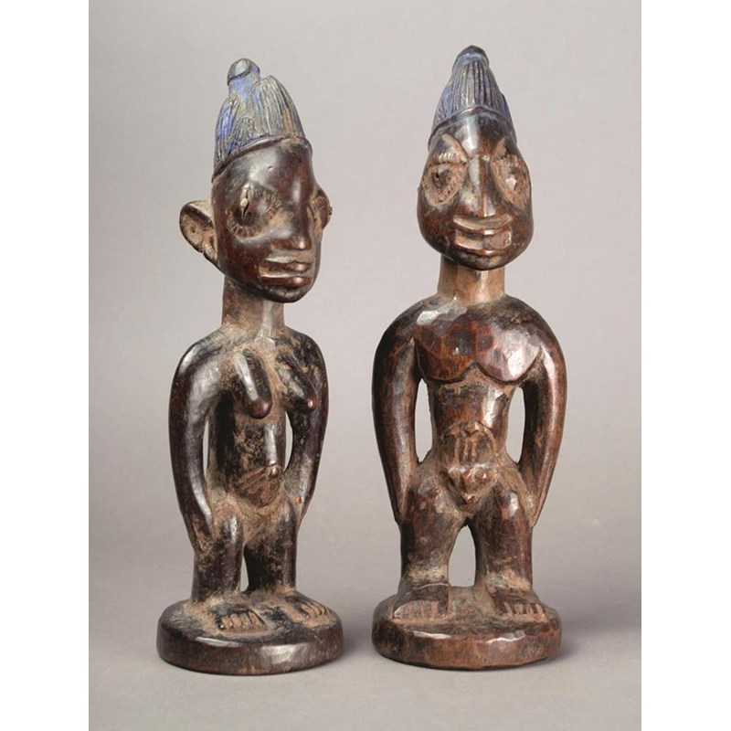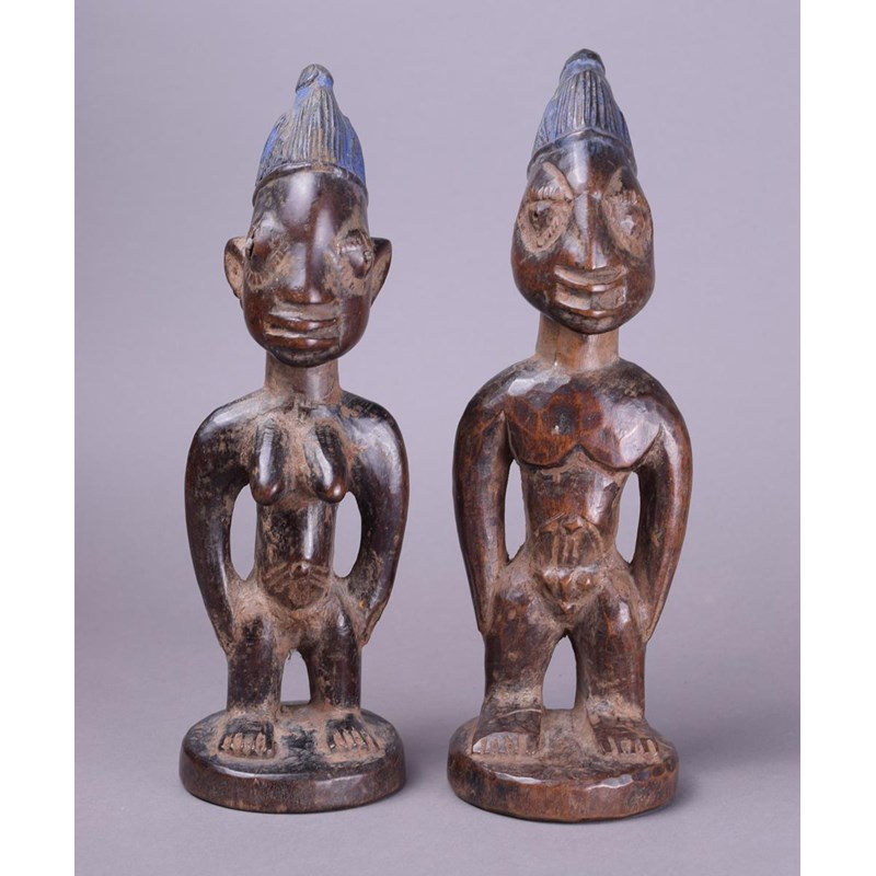 A near pair of Yoruba Ibeji male and female figures