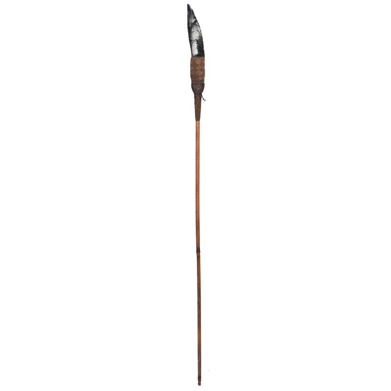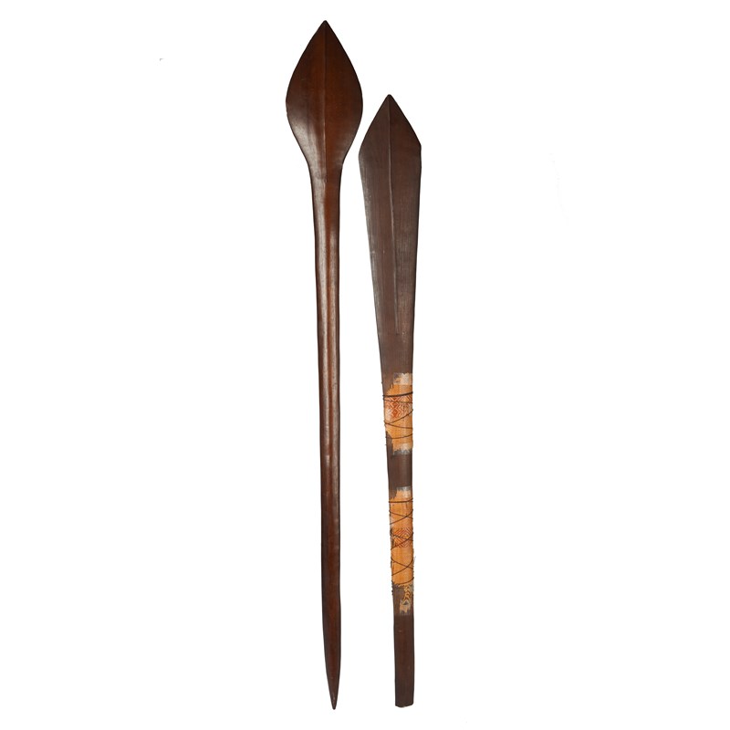 both with medial ridges to the heads, the kila with the remains of woven rattan binding,