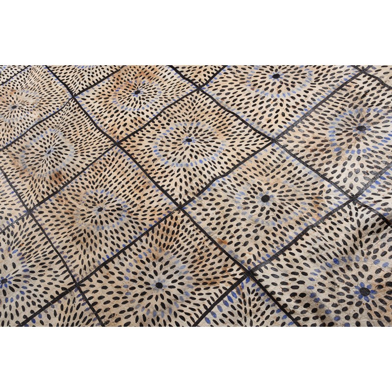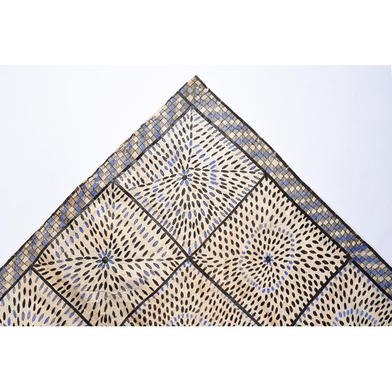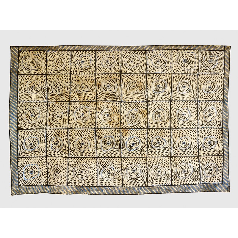 painted forty squares, each with a radiating dash design in blue and black pigment,
