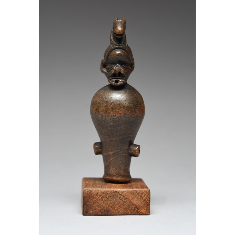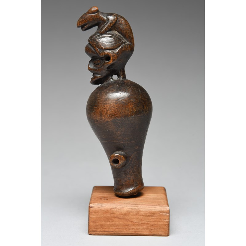 with a carved head finial with a mongoose surmount, pierced though the neck for attachment,
