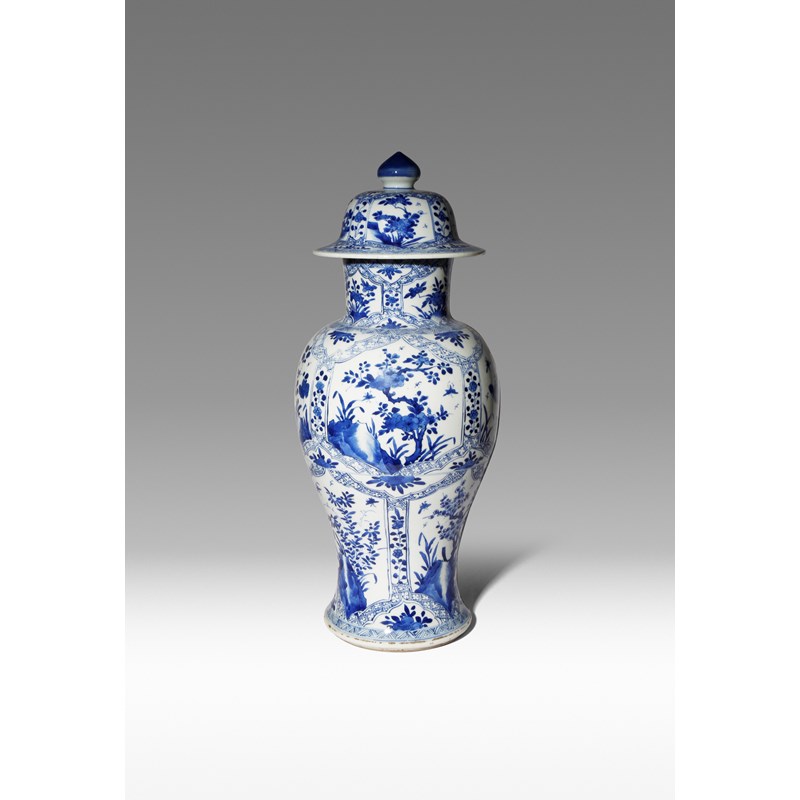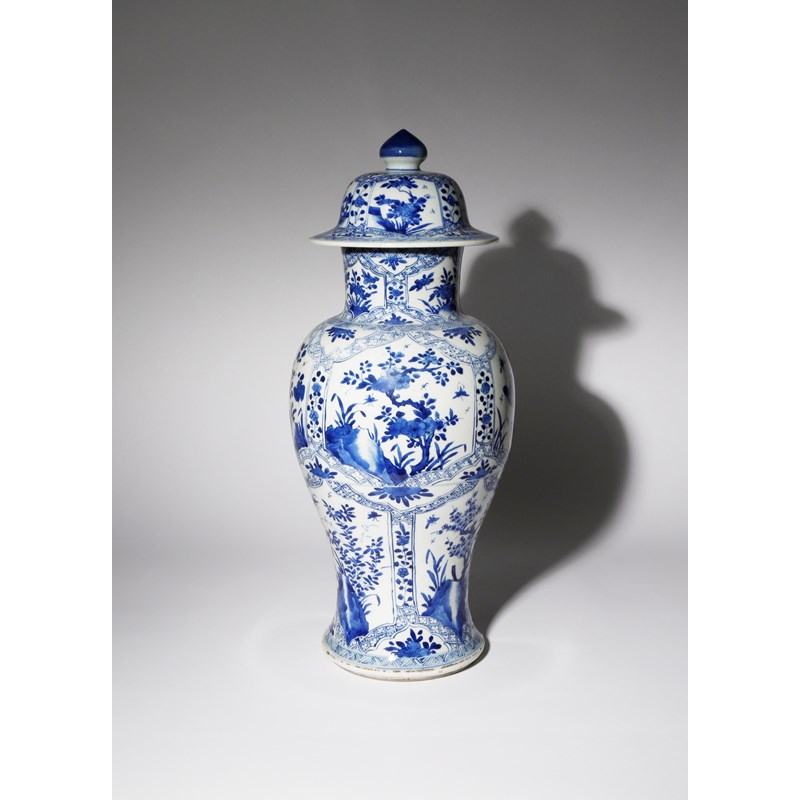 A CHINESE BLUE AND WHITE BALUSTER VASE AND COVER