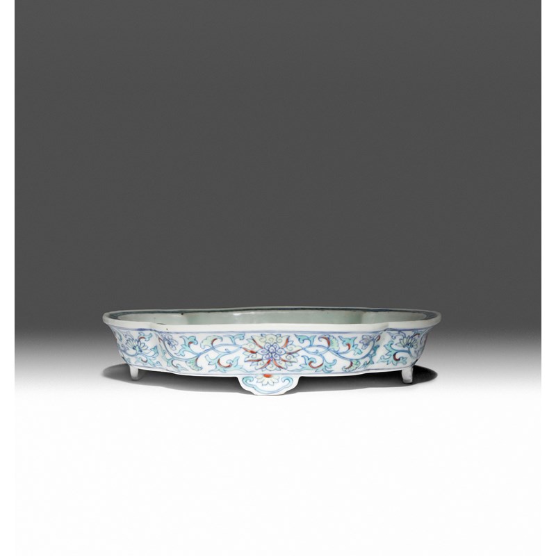 A CHINESE DOUCAI QUATRELOBED 'LOTUS' TRAY OR STAND