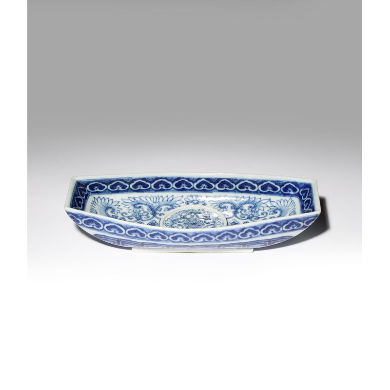 A CHINESE BLUE AND WHITE INGOT-SHAPED CUP STAND