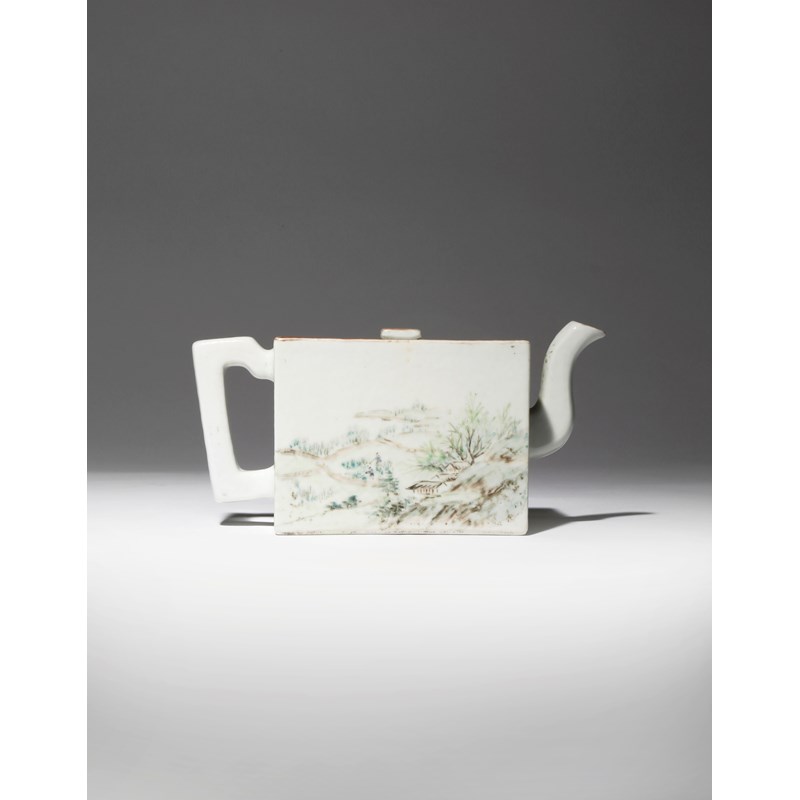 A CHINESE ENAMELLED RECTANGULAR-SECTION TEAPOT AND COVER