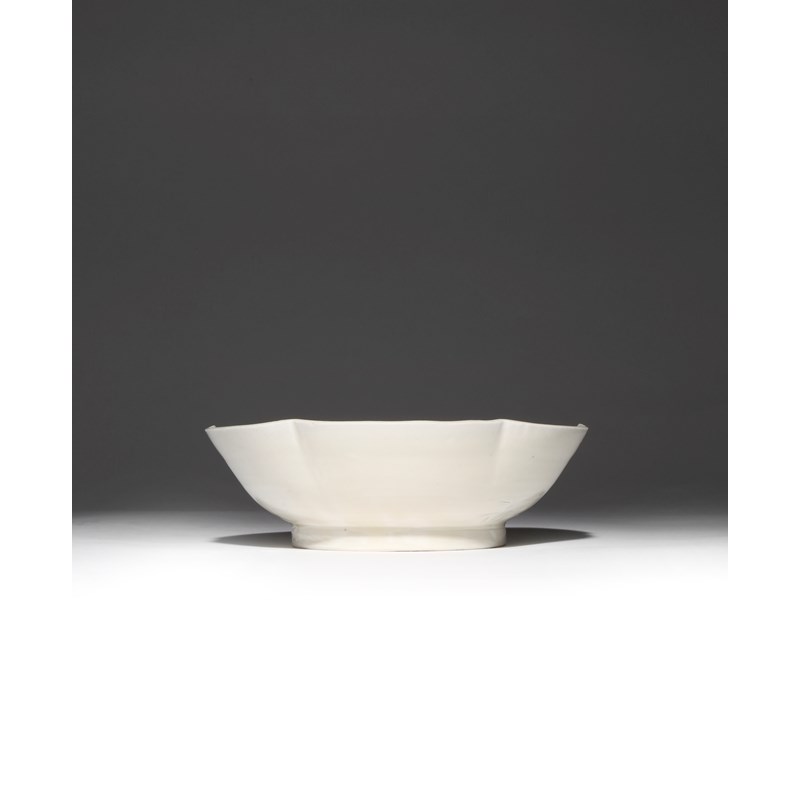 A RARE CHINESE DING WHITE GLAZED MALLOW-SHAPED FOOTED BOWL