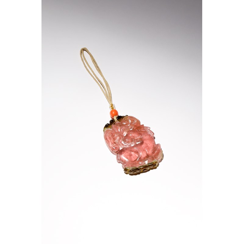A CHINESE PINK TOURMALINE 'DEER' PENDANT