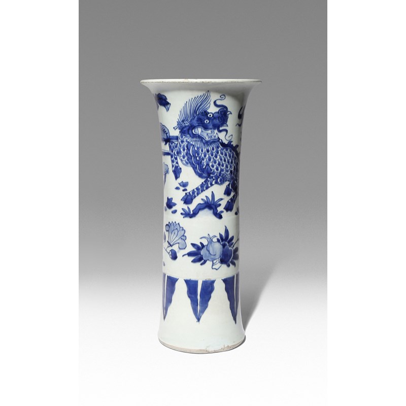 A CHINESE BLUE AND WHITE 'QILIN' SLEEVE VASE
