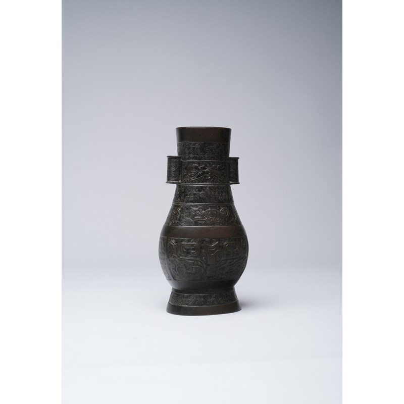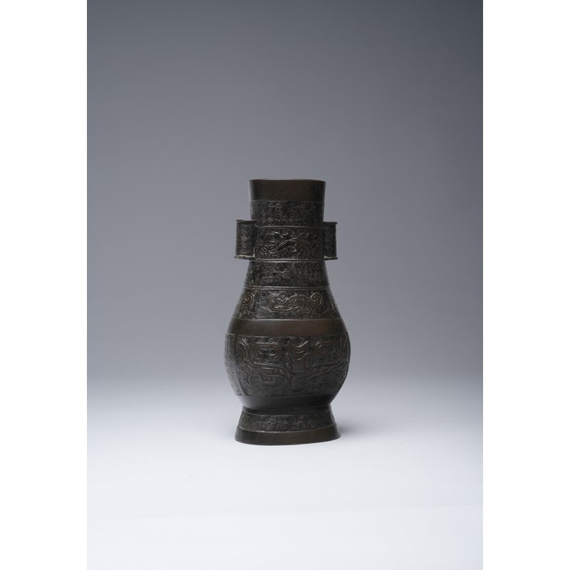 A CHINESE BRONZE ARCHAISTIC HU-SHAPED VASE