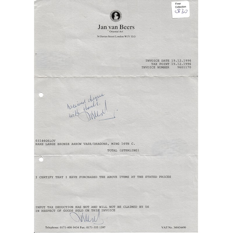 Provenance: purchased from Jan van Beers Oriental Art, London, 19th December 1996.