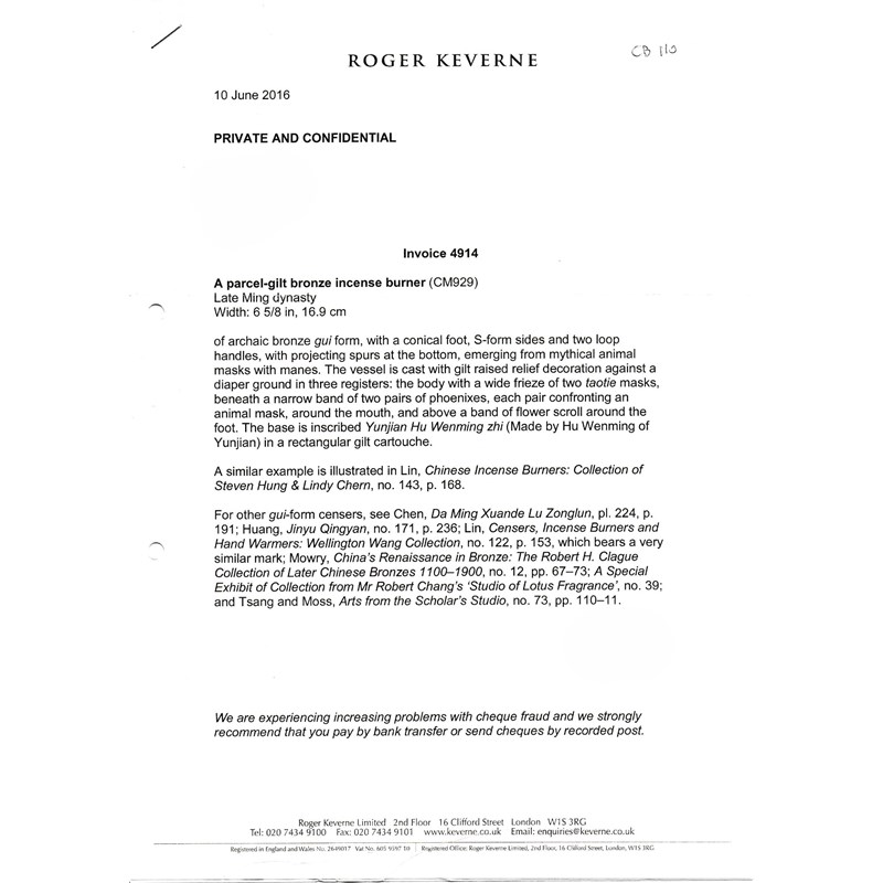 Provenance: purchased from Roger Keverne Ltd, 10th June 2016
