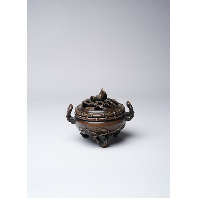 A CHINESE BRONZE 'BAMBOO' INCENSE BURNER AND COVER