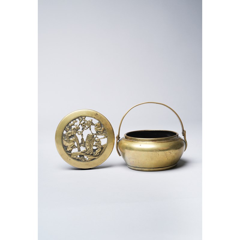 A CHINESE GILT-COPPER ALLOY HAND WARMER AND COVER