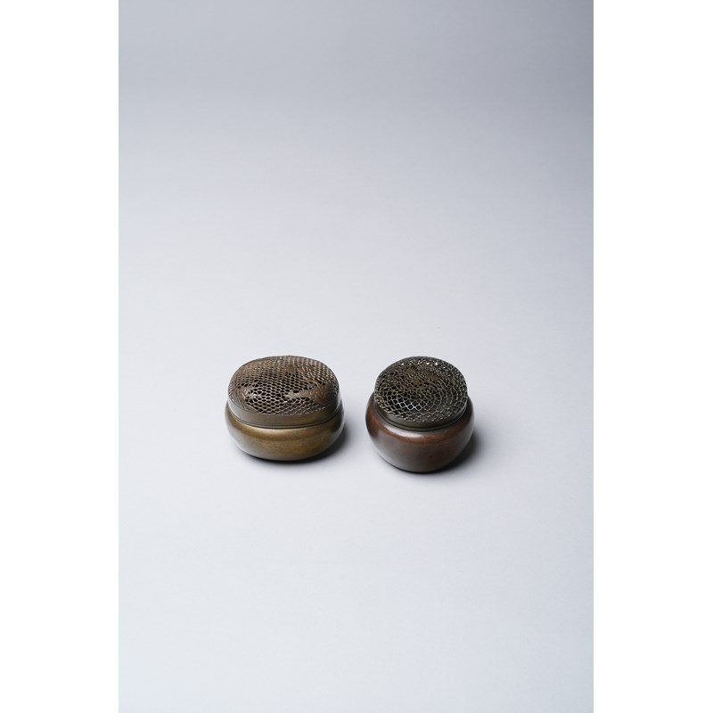 清 銅鏤空山水紋手爐及團鳳紋手爐 一組兩件