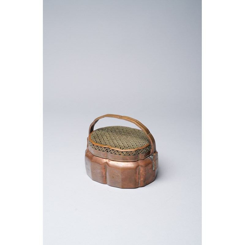A CHINESE COPPER ALLOY LOBED HAND WARMER AND COVER