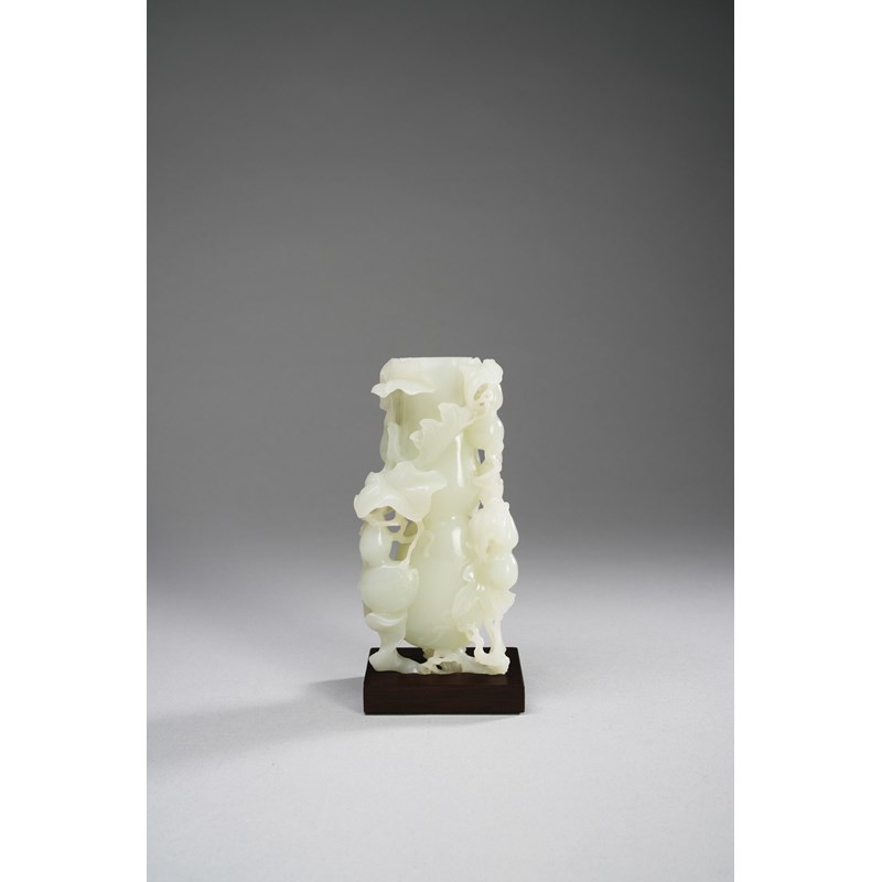 A CHINESE WHITE JADE 'GOURDS' VASE