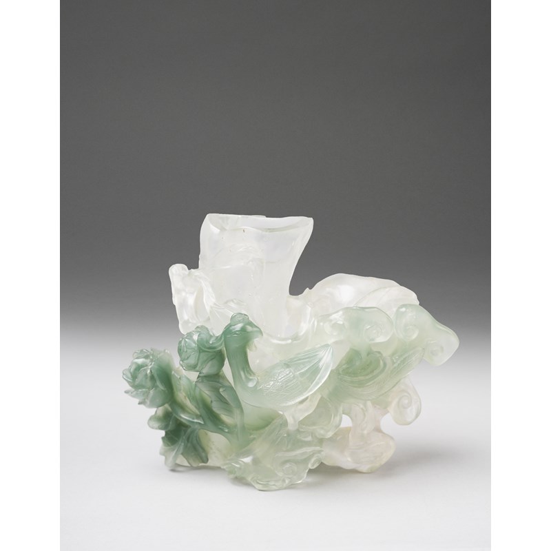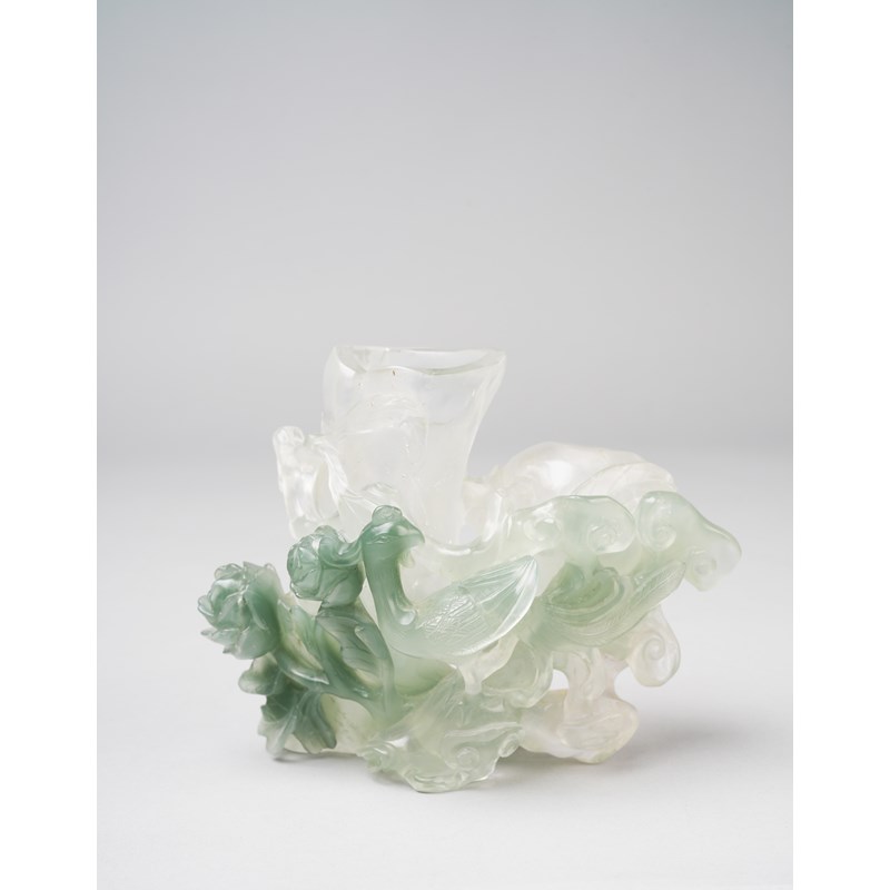 For a similar but larger example, see the rock crystal 'phoenix' group sold in these rooms on 14th November 2023 from the Lawrence Jade collection. See also another related rock crystal vessel in the Victoria and Albert Museum, accession no. C.1747A/2-1910, illustrated in Rawson and Ayers, Chinese Jade: Throughout The Ages, no.486.